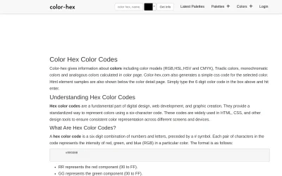 Color hex is a easy to use tool to get the color codes information including color models (RGB,HSL,HSV and CMYK), css and html color codes.